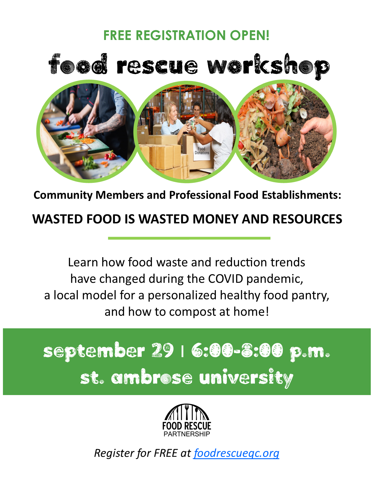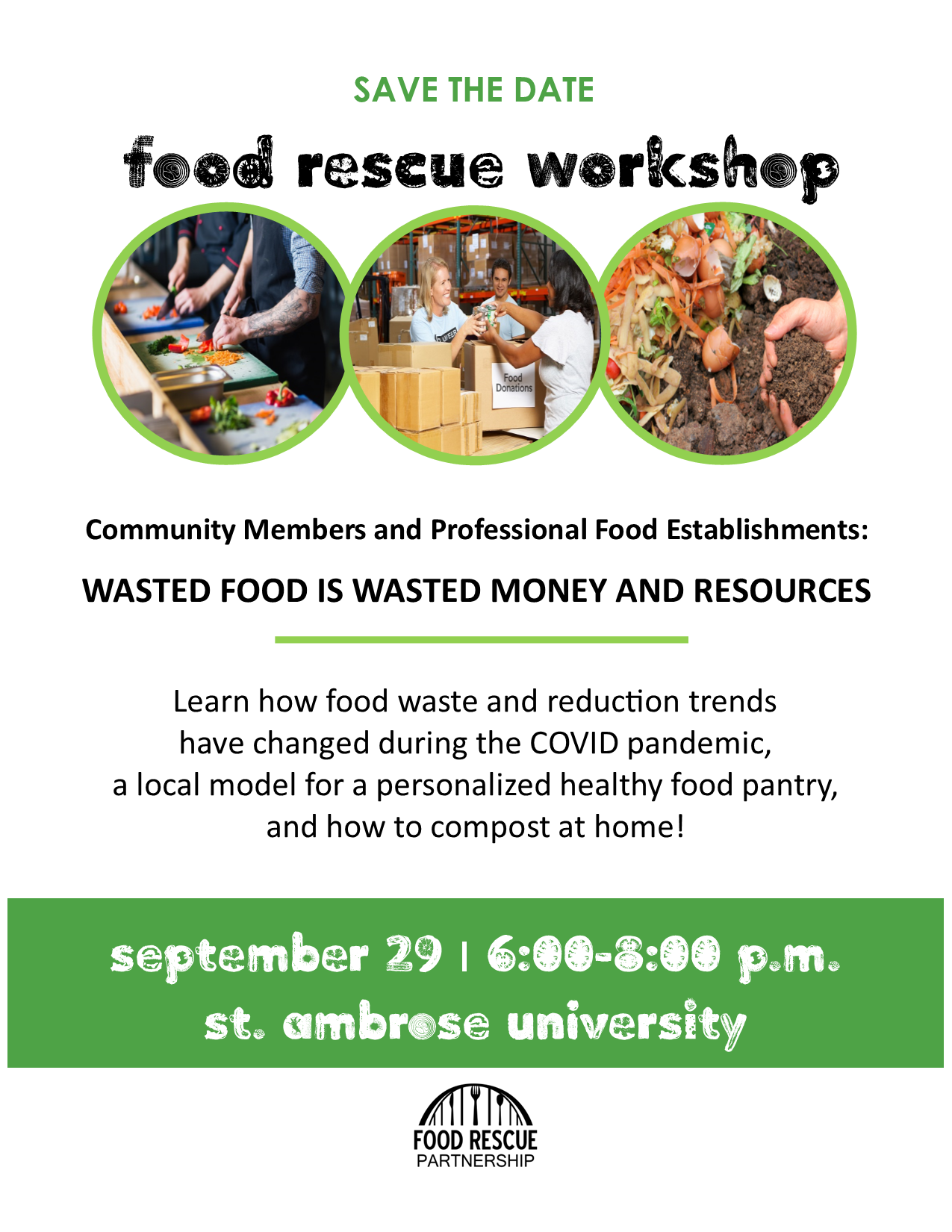 The Food Rescue Partnership hosted its fourth Food Rescue Workshop on September 29, 2022 at St. Ambrose University in Davenport, IA.